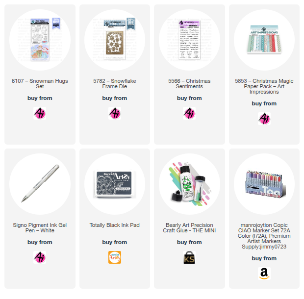 Tasha here sharing a snowy holiday card featuring the new 6107 – Snowman Hugs Set from Art Impressions. I am not a fan of Winter, but I dolove creating cards with snowy scenes and cute snowman stamps—and this little couple is just adorable!